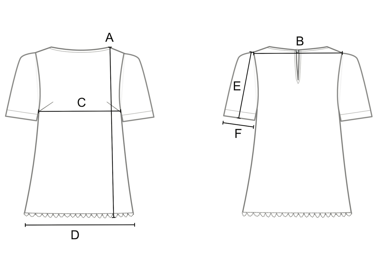 • Scalloped hem with floral embroidery