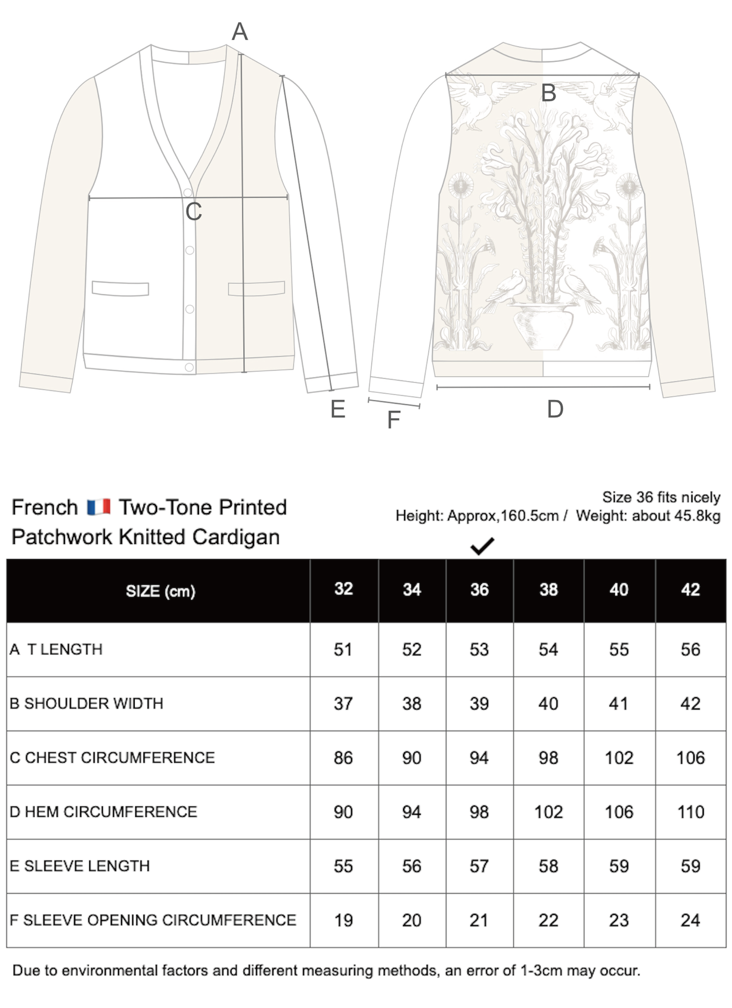 【 French 🇫🇷 Two-Tone Printed Patchwork Knitted Cardigan 】