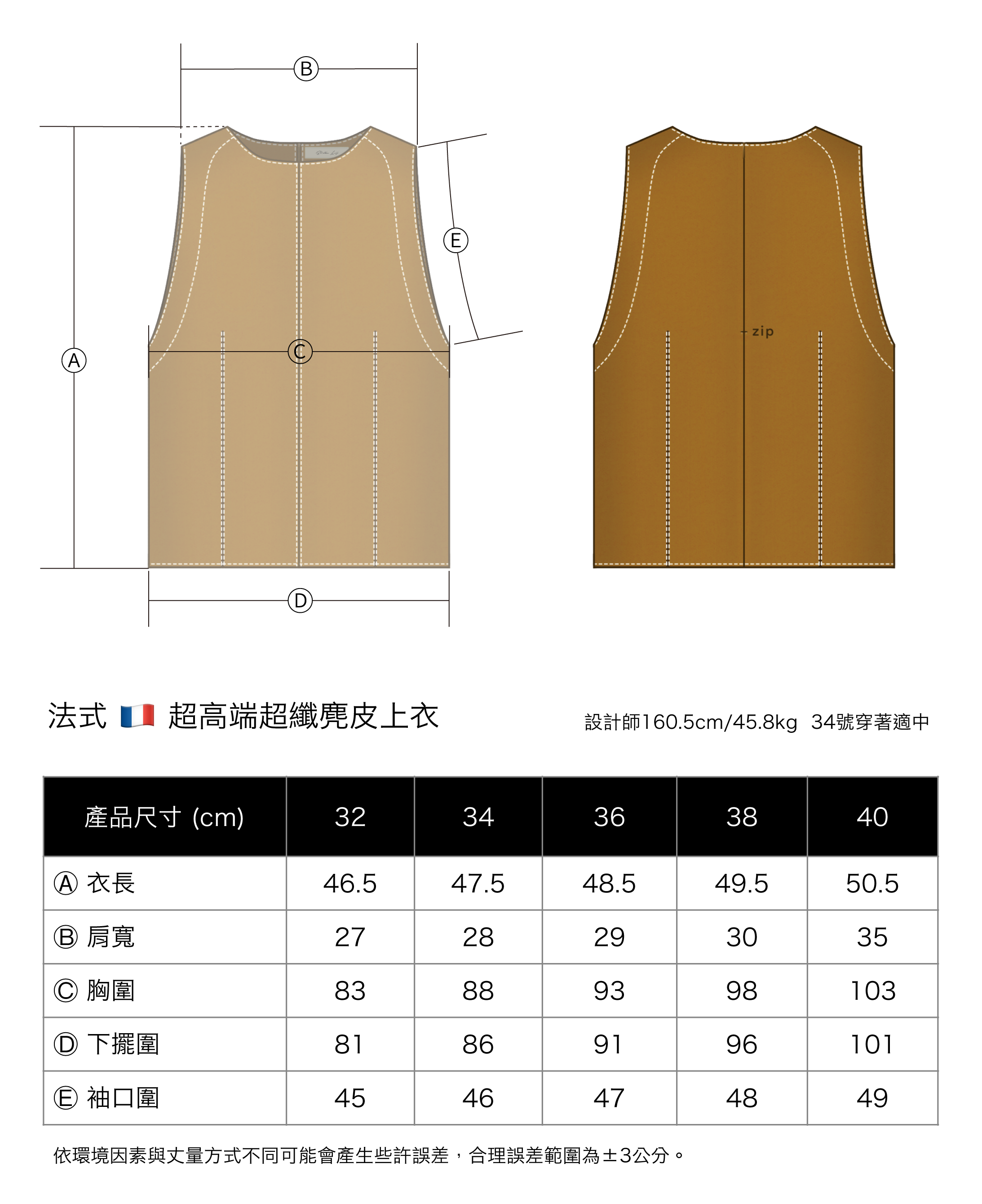 設計師本人穿 34 適中