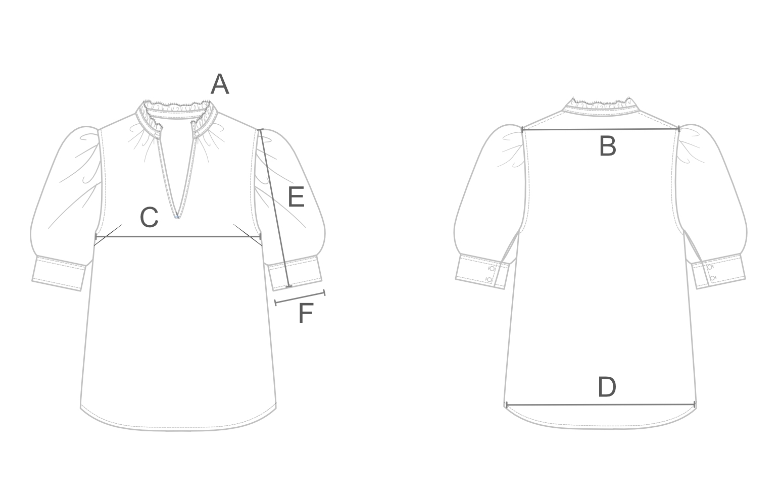 The sleeves are gathered with a small pleat at the cuffs for a delicate touch